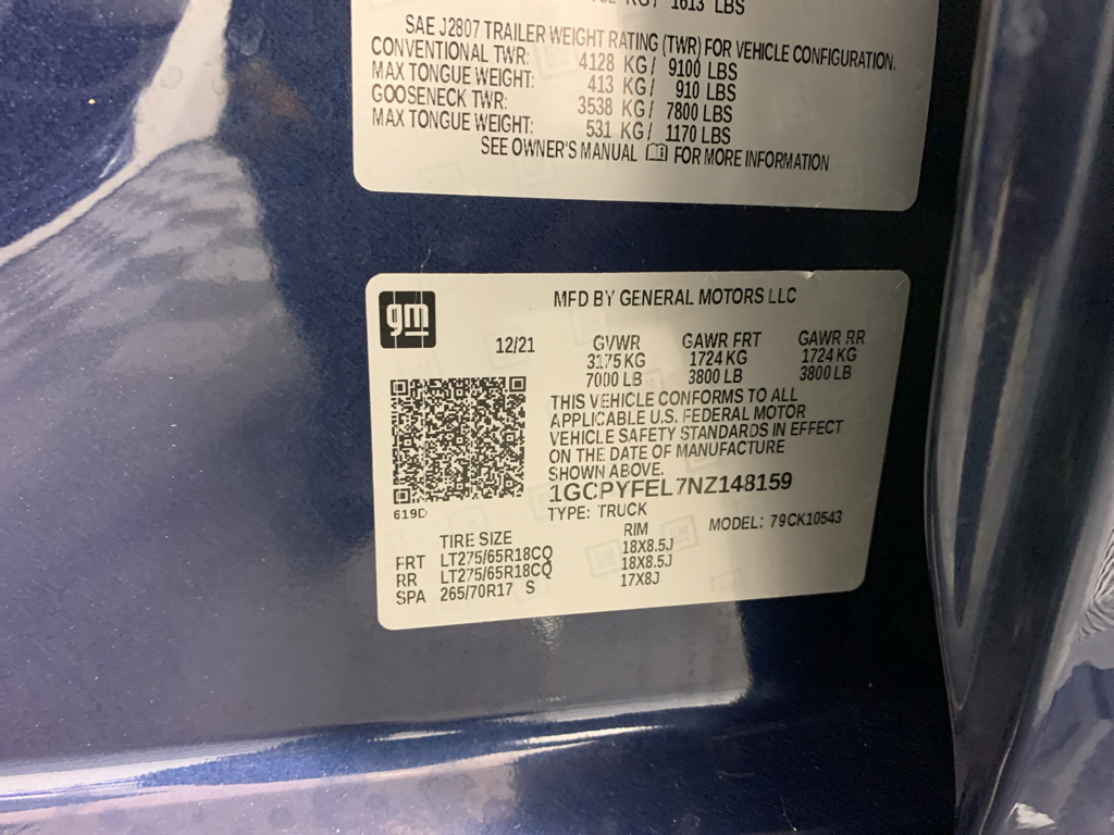 Convenience Package II: HD Rear Vision Camera; Premium Bose 7-Speaker Sound System; Power Sliding Rear Window with Rear Defogger; SiriusXM with 360L; Wireless Phone Projection; 120-Volt Instrument Panel Power Outlet; Chevrolet Infotainment 3 Plus System Radio; 2 USB Ports; Universal Home Remote. Leather Package: Leather-Appointed Front Seat Trim; Up-Level Rear Seat with Storage Package. Preferred Equipment Group 2LT: LED Cargo Area Lighting; Rear Vision Camera; Bluetooth For Phone; Remote Vehicle Starter System; 2 USB Ports (first Row); Electric Rear-Window Defogger; Theft Deterrent System (unauthorized Entry); Auxiliary External Transmission Oil Cooler; LT275/65R18C MT BW Tires; Compass; 4.2" Diagonal Color Display Driver Info Center; Heated Steering Wheel; Trailering Package; Standard Tailgate; Front LED Fog Lamps; Heated Driver and Front Outboard Passenger Seats; Suspension Package; Steering Wheel Audio Controls; Color-Keyed Carpeting Floor Covering; OnStar and Chevrolet Connected Services Capable; Power Front Windows with Passenger Express Down; 2-Speed Transfer Case; Deep-Tinted Glass; All-Weather Floor Liner; High Gloss Black Mirror Caps; Dual Exhaust with Polished Outlets; Electronic Cruise Control; Power Rear Windows with Express Down; Performance Red Recovery Hooks; Power Front Windows with Driver Express Up/down; High Gloss Black Grille; Leather Wrapped Steering Wheel; EZ Lift Power Lock and Release Tailgate; Convenience Package; Rear Dual USB Charging-Only Ports; Keyless Open and Start; LED Reflector Headlamps; 12-Volt Rear Auxiliary Power Outlet; 18" X 8.5" Black Painted Aluminum Wheels; Auto-Locking Rear Differential; Power Door Locks. Bed Protection Package: Rear Wheelhouse Liners; Chevytec Spray-On Black Bedliner. Power Sunroof. Integrated Trailer Brake Controller. **Equipment listed is based on original vehicle build and subject to change. Please confirm the accuracy of the included equipment by calling the dealer prior to purchase.**