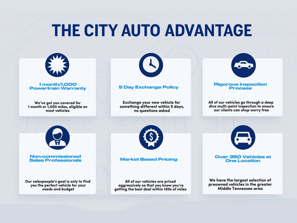 With over 36 years of experience, City Auto remains one of the most trusted names in used car sales in Memphis and Murfreesboro. Our community-based approach, wide inventory, and competitive pricing continue to earn the trust of local customers.