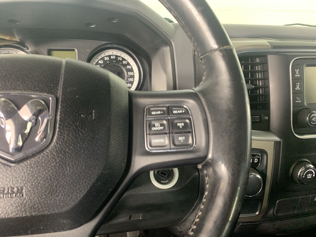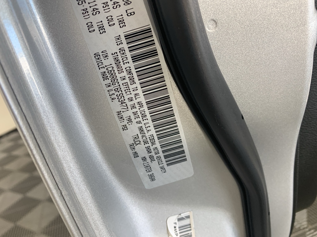 This model is a manufacturer certified pre-owned vehicle. Bluetooth technology is built into this vehicle, keeping your hands on the steering wheel and your focus on the road. Our dealership has already run the CARFAX report and it is clean. A clean CARFAX is a great asset for resale value in the future. This 2015 Ram 1500 has a V8, 5.7L high output engine. The vehicle shines with an exquisite metallic silver exterior finish. Enjoy the incredible handling with the rear wheel drive on this 2015 Ram 1500 . Set the temperature exactly where you are most comfortable in this model. The fan speed and temperature will automatically adjust to maintain your preferred zone climate. The high efficiency automatic transmission shifts smoothly and allows you to relax while driving. This Ram 1500 features cruise control for long trips. This 1/2 ton pickup is equipped with a gasoline engine. The Electronic Stability Control will keep you on your intended path.