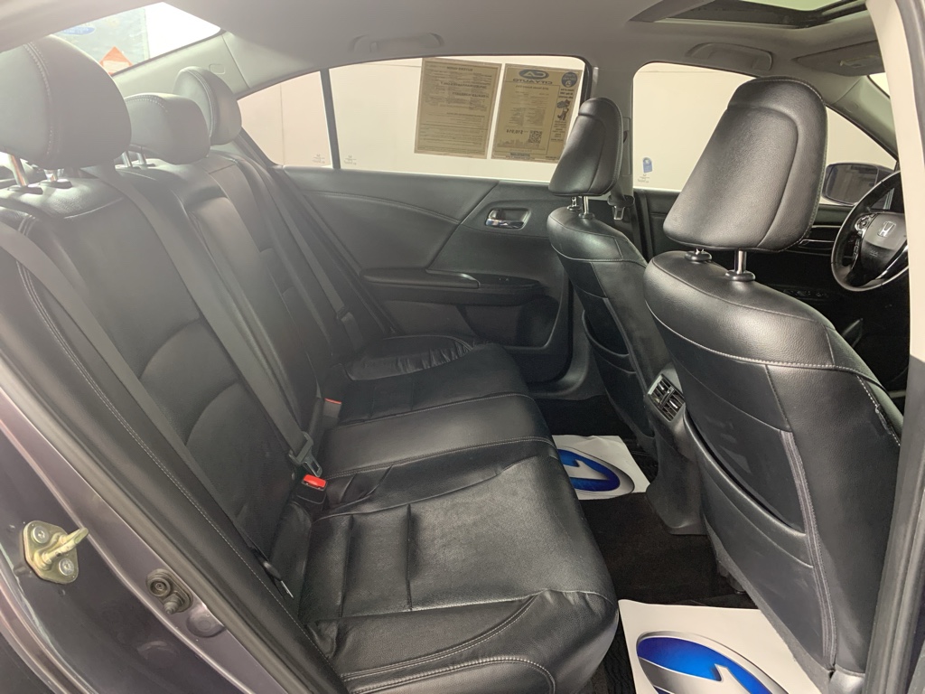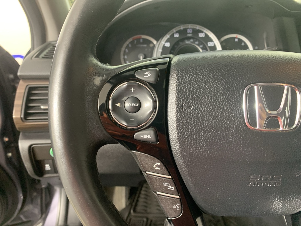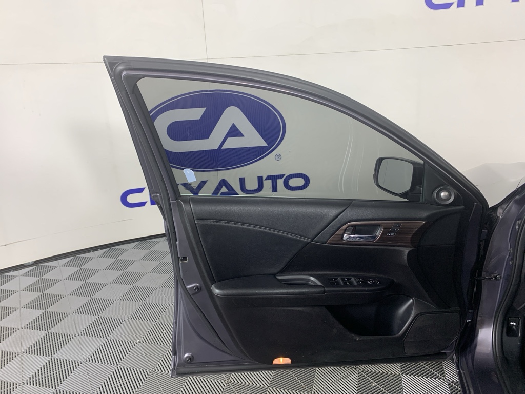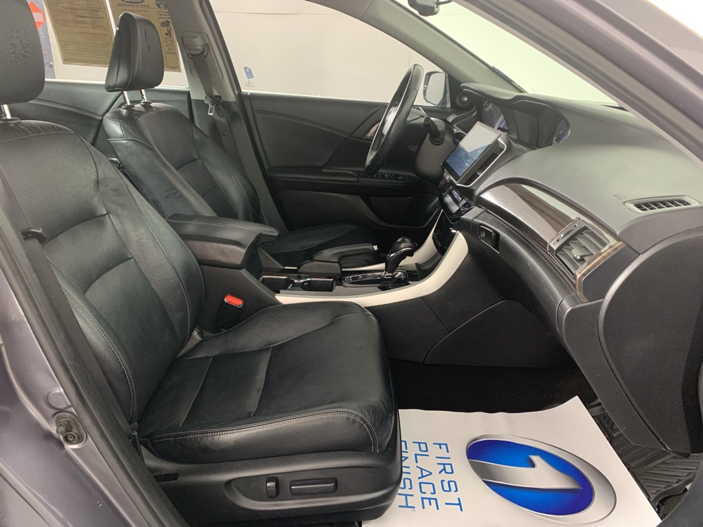 Mid-sized cars are the perfect size. This Honda Accord comes equipped with Android Auto for seamless smartphone integration on the road. Apple CarPlay: Seamless smartphone integration for this mid-size car - stay connected and entertained on the go! This unit keeps you comfortable with Auto Climate. This 2016 Honda Accord has an automatic transmission. Protect this 2016 Honda Accord from unwanted accidents with a cutting edge backup camera system. This 2016 Honda Accord has gone through a stringent manufacturer pre-owned certification process, including a meticulous mechanical and reconditioning processes. Take the stress out of car buying with this certified pre-owned. Maintaining a stable interior temperature in this model is easy with the climate control system. Easily set your speed in this model with a state of the art cruise control system. Increase or decrease velocity with the touch of a button. The Electronic Stability Control will keep you on your intended path. This unit has a V6, 3.5L high output engine. The fog lights cut through the weather so you can see what's ahead. Front wheel drive on this Honda Accord gives you better traction and better fuel economy. Enjoy the tried and true gasoline engine in the vehicle. The Honda Accord projects refinement with a racy metallic gray exterior. This model features a hands-free Bluetooth phone system. The leather seats in it are a must for buyers looking for comfort, durability, and style. With the adjustable lumbar support in this mid-size car your back will love you. Start this model from inside with remote start.