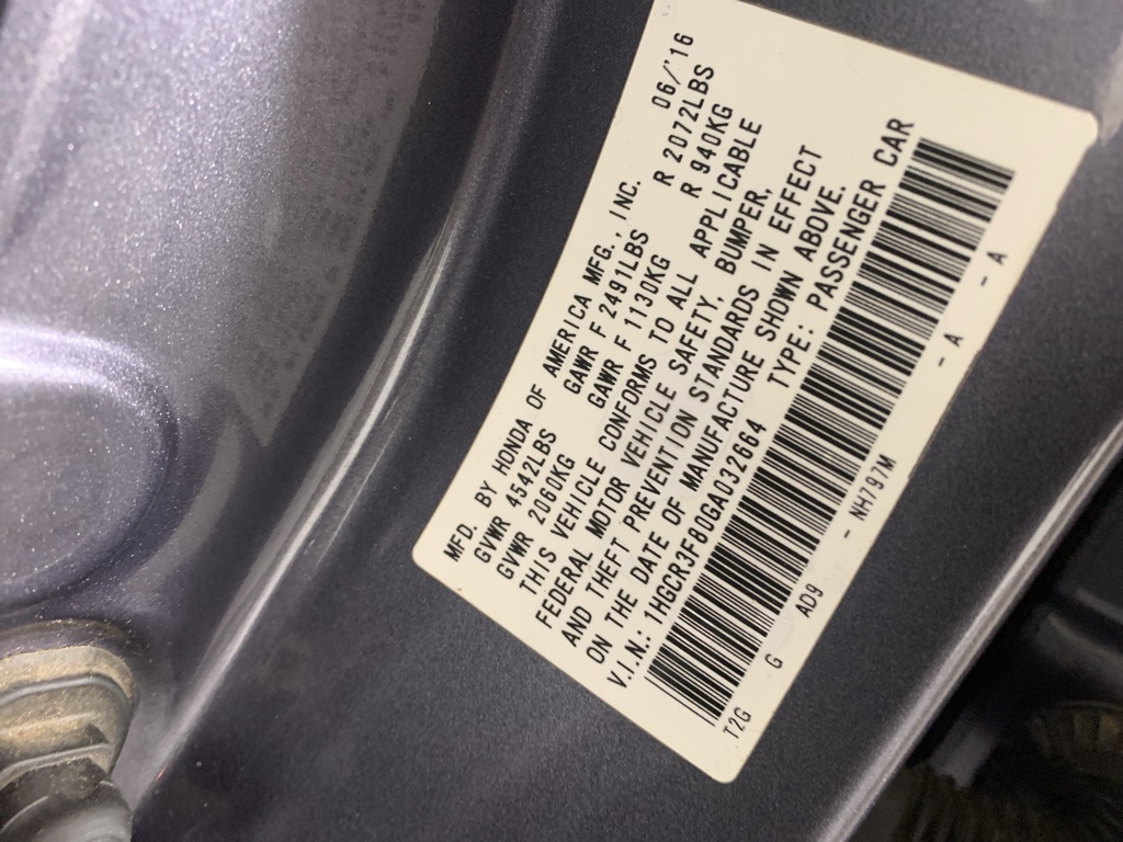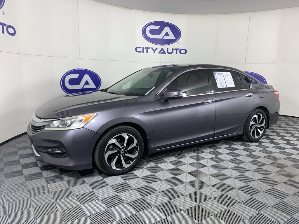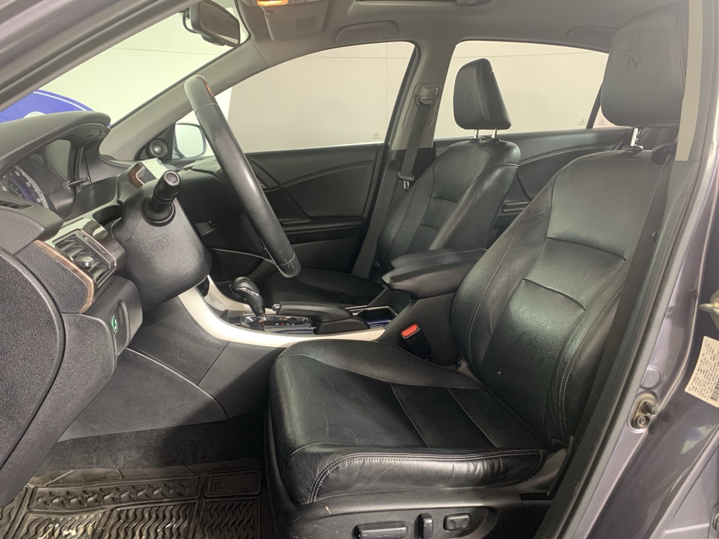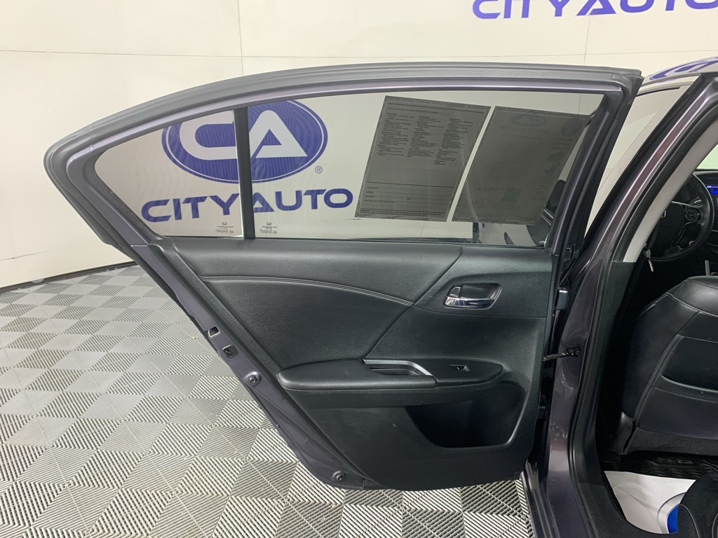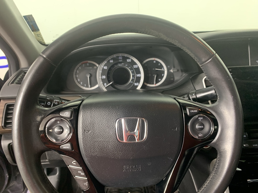 Mid-sized cars are the perfect size. This Honda Accord comes equipped with Android Auto for seamless smartphone integration on the road. Apple CarPlay: Seamless smartphone integration for this mid-size car - stay connected and entertained on the go! This unit keeps you comfortable with Auto Climate. This 2016 Honda Accord has an automatic transmission. Protect this 2016 Honda Accord from unwanted accidents with a cutting edge backup camera system. This 2016 Honda Accord has gone through a stringent manufacturer pre-owned certification process, including a meticulous mechanical and reconditioning processes. Take the stress out of car buying with this certified pre-owned. Maintaining a stable interior temperature in this model is easy with the climate control system. Easily set your speed in this model with a state of the art cruise control system. Increase or decrease velocity with the touch of a button. The Electronic Stability Control will keep you on your intended path. This unit has a V6, 3.5L high output engine. The fog lights cut through the weather so you can see what's ahead. Front wheel drive on this Honda Accord gives you better traction and better fuel economy. Enjoy the tried and true gasoline engine in the vehicle. The Honda Accord projects refinement with a racy metallic gray exterior. This model features a hands-free Bluetooth phone system. The leather seats in it are a must for buyers looking for comfort, durability, and style. With the adjustable lumbar support in this mid-size car your back will love you. Start this model from inside with remote start.