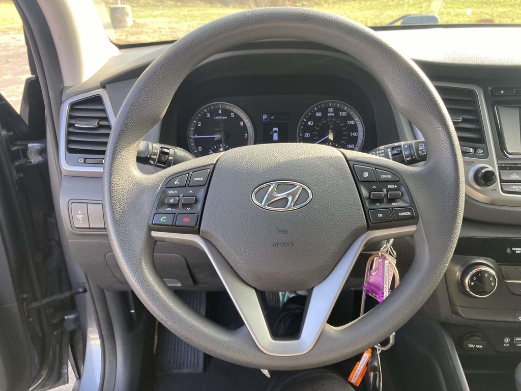 The vehicle is a manufacturer certified pre-owned vehicle. This vehicle features a hands-free Bluetooth phone system. Our dealership has already run the CARFAX report and it is clean. A clean CARFAX is a great asset for resale value in the future. Protect this 2017 Hyundai Tucson from unwanted accidents with a cutting edge backup camera system. This model projects refinement with a racy metallic gray exterior. Quickly unlock this Hyundai Tucson with keyless entry. Maintaining a stable interior temperature in this unit is easy with the climate control system. The vehicle has a 4 Cyl, 1.6L high output engine. The Hyundai Tucson is front wheel drive. Help alleviate lower back pain with the driver seat lumbar support in this Hyundai Tucson. The high efficiency automatic transmission shifts smoothly and allows you to relax while driving. Enjoy the tried and true gasoline engine in this vehicle. Electronic Stability Control is one of many advanced safety features on this mid-size suv.This unit features a hands-free Bluetooth phone system.