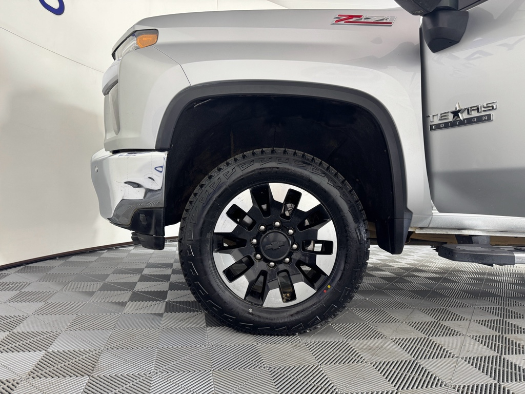 Convenience Package Convenience Package II Leather Package: Up-Level Rear Seat with Storage Package Z71 Off-Road and Protection Package: Black Chevytec Spray-On Bedliner with Chevrolet Logo; 1st and 2nd Row All-Weather Floor Liners Z71 Off-Road Package: Hill Descent Control; Off-Road Suspension; Skid Plates Safety Package: Ultrasonic Front and Rear Park Assist; Rear Cross Traffic Alert; Lane Change Alert with Side Blind Zone Alert Texas Edition Preferred Equipment Group 1LT: Rear Vision Camera; Rear 60/40 Folding Bench Seat (folds Up); Bluetooth For Phone; 2 USB Ports (1st Row); Heated Vertical Trailering Mirrors; 170 Amp Alternator; 4.2" Diagonal Color Display Driver Information Center; Urethane Steering Wheel; Steering Wheel Audio Controls; Chevrolet Connected Access Capable; Color-Keyed Carpeting Floor Covering; OnStar and Chevrolet Connected Services Capable; Power Front Windows with Passenger Express Down; Remote Keyless Entry; Front Rubberized Vinyl Floor Mats; Black Mirror Caps; Rear Rubberized Vinyl Floor Mats; 4-Way Manual Driver Seat Adjuster; 2-Speed Electronic Shift Transfer Case; Deep-Tinted Glass; Electronic Cruise Control with Set and Resume Speed; Power Rear Windows with Express Down; Integrated Trailer Brake Controller; Manual Tilt-Wheel Steering Column; Chrome Front Grille; Power Front Windows with Driver Express Up/down; Manual Tailgate Function with EZ Lift; Compass; 4G LTE Wi-Fi Hotspot Capable; Locking Tailgate; Power Door Locks Gooseneck/5th Wheel Package: Gooseneck/5th Wheel Prep Package; Black Chevytec Spray-On Bedliner with Chevrolet Logo 20" Machined Aluminum Wheels with Black Painted Accents 6" Rectangular Chromed Tubular Assist Steps Black Chevytec Spray-On Bedliner with Chevrolet Logo Heated and Auto-Dimming Vertical Trailering Mirrors Front Bucket Seats with Center Console 10-Way Power Driver Seat Adjuster with Lumbar Front LED Fog Lamps Bed View Camera Electric Rear-Window Defogger 120-Volt Instrument Panel Power Outlet LT275/65R20 AT BW Tires Skid Plates LED Cargo Area Lighting Manual Tailgate Function with EZ Lift LED Smoked Amber Roof Marker Lamps **Equipment listed is based on original vehicle build and subject to change. Please confirm the accuracy of the included equipment by calling the dealer prior to purchase.**