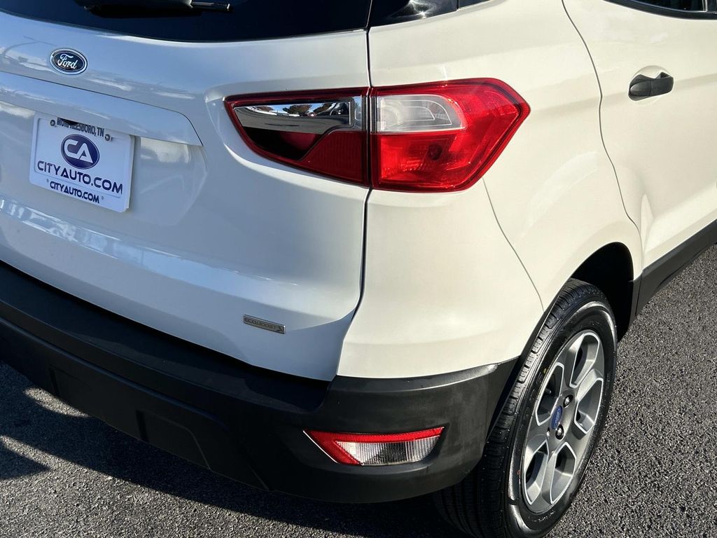 Drive home today in this certified pre-owned 2020 Ford EcoSport S, located in Murfreesboro, TN — the best price on a dependable, fuel-efficient compact SUV. Powered by a zippy 3-cylinder 1.0L gasoline engine with smooth FWD handling, this Ford EcoSport S combines nimble city driving with confident highway efficiency. The sporty exterior and thoughtfully designed interior make it a smart choice for first-time buyers, commuters, and small families. This Ford EcoSport S features Hands Free Bluetooth for safe, convenient calls and audio streaming, plus a Back-Up Camera to ease parking and tight maneuvers. The CARFAX Clean Report gives peace of mind about its history, and its certified pre-owned status means it has passed thorough inspections and includes warranty benefits for extra confidence. Priced to move and offering the best value in Murfreesboro, TN, this Ford EcoSport S represents a budget-friendly way to get into a versatile Ford SUV without sacrificing quality. Whether you're navigating downtown streets or heading out on a weekend getaway, this vehicle delivers comfort, connectivity, and efficiency. Contact us today to schedule a test drive and see why this certified 2020 Ford EcoSport S is the top-priced option for smart buyers in the area.