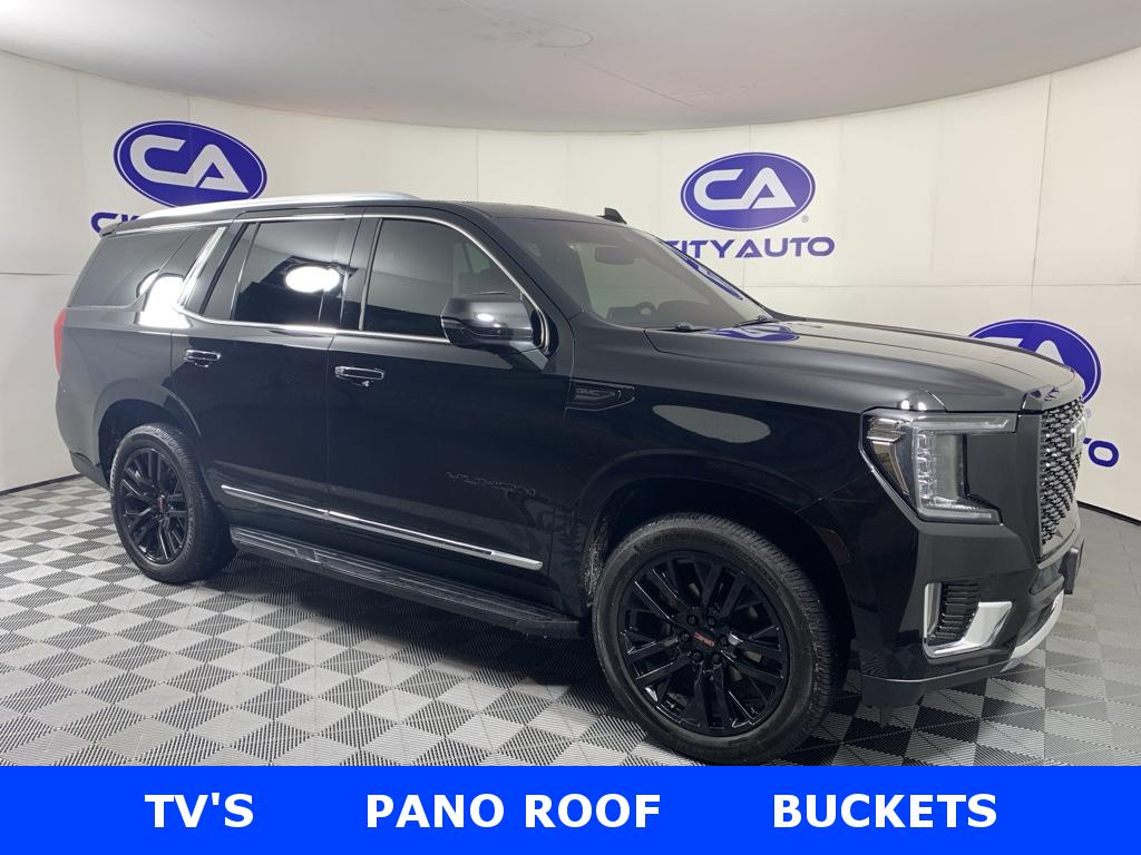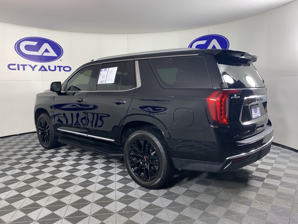 Carry lots of cargo while your passengers are comfortable. It has four wheel drive capabilities. The GMC Yukon offers Android Auto for seamless smartphone integration. This 2021 GMC Yukon 1500 offers Apple CarPlay for seamless connectivity. The high efficiency automatic transmission shifts smoothly and allows you to relax while driving. This unit features a high end BOSE stereo system. Protect this unit from unwanted accidents with a cutting edge backup camera system. The GMC Yukon is painted with a sleek and sophisticated black color. This model has a clean CARFAX vehicle history report. It has gone through a stringent manufacturer pre-owned certification process, including a meticulous mechanical and reconditioning processes. Take the stress out of car buying with this certified pre-owned. Maintaining a stable interior temperature in the GMC Yukon is easy with the climate control system. This 1/2 ton suv warns of approaching vehicles with Cross-Traffic Alert. This 2021 GMC Yukon 1500 features cruise control for long trips. This model has a V8, 5.3L high output engine. Enjoy the tried and true gasoline engine in it. This unit features a hands-free Bluetooth phone system. This 1/2 ton suv is pure luxury with a heated steering wheel. This 1/2 ton suv's Lane Departure Warning helps keep you in your lane. Lane Keep Assist in the vehicle helps maintain safe driving by gently steering to stay within the lane. The leather seats in it are a must for buyers looking for comfort, durability, and style. With the adjustable lumbar support in this vehicle your back will love you. You'll never again be lost in a crowded city or a country region with the navigation system on this GMC Yukon. Keep safely connected while in this vehicle with OnStar. You may enjoy services like Automatic Crash Response, Navigation, Roadside Assistance and Hands-Free Calling. Load groceries and much more with ease into this 1/2 ton suv thanks to the power liftgate. This vehicle comes with power adjustable seat to get your seat just right for you. Power seats are a must! Never get into a cold vehicle again with the remote start feature on it. A trailer braking system is already installed on the vehicle. This unit is equipped with the latest generation of XM/Sirius Radio.