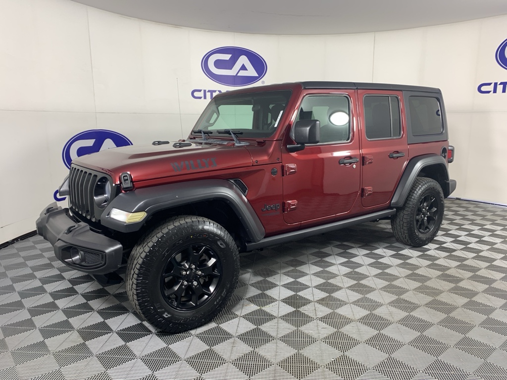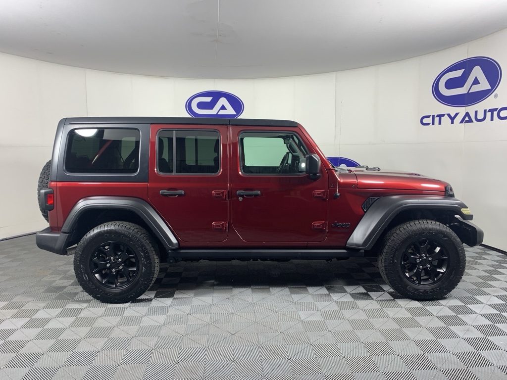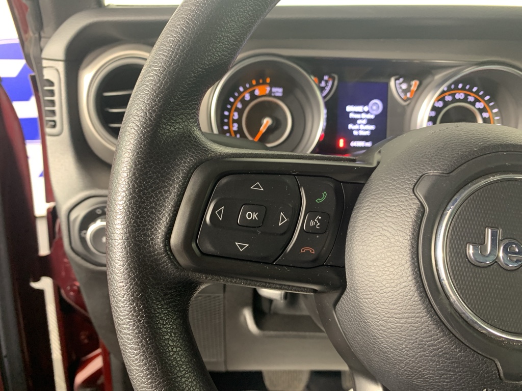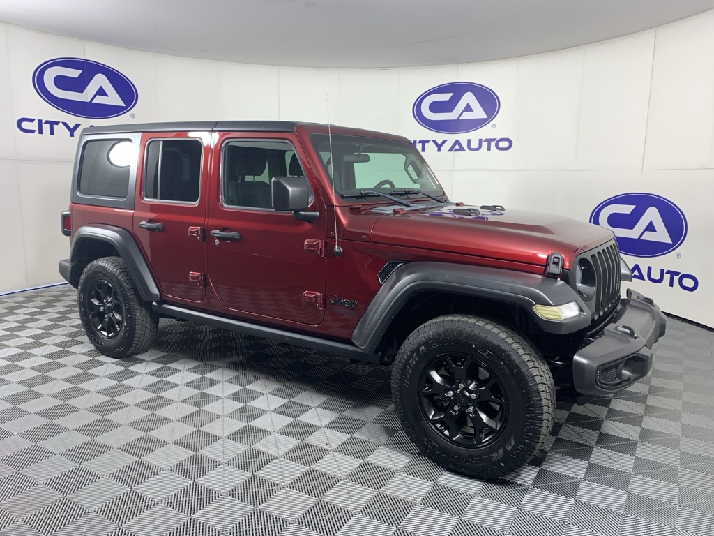 See what's behind you with the back up camera on this mid-size suv. This 2021 Jeep Wrangler has gone through a stringent manufacturer pre-owned certification process, including a meticulous mechanical and reconditioning processes. Take the stress out of car buying with this certified pre-owned. Bluetooth technology is built into it, keeping your hands on the steering wheel and your focus on the road. This model gleams with a flashy red exterior. When you encounter slick or muddy roads, you can engage the four wheel drive on this 2021 Jeep Wrangler and drive with confidence. Set the temperature exactly where you are most comfortable in the Jeep Wrangler. The fan speed and temperature will automatically adjust to maintain your preferred zone climate. This Jeep Wrangler has a 4 Cyl, 2.0L high output engine. The fog lights cut through the weather so you can see what's ahead. The high efficiency automatic transmission shifts smoothly and allows you to relax while driving.