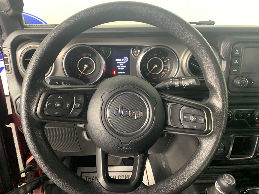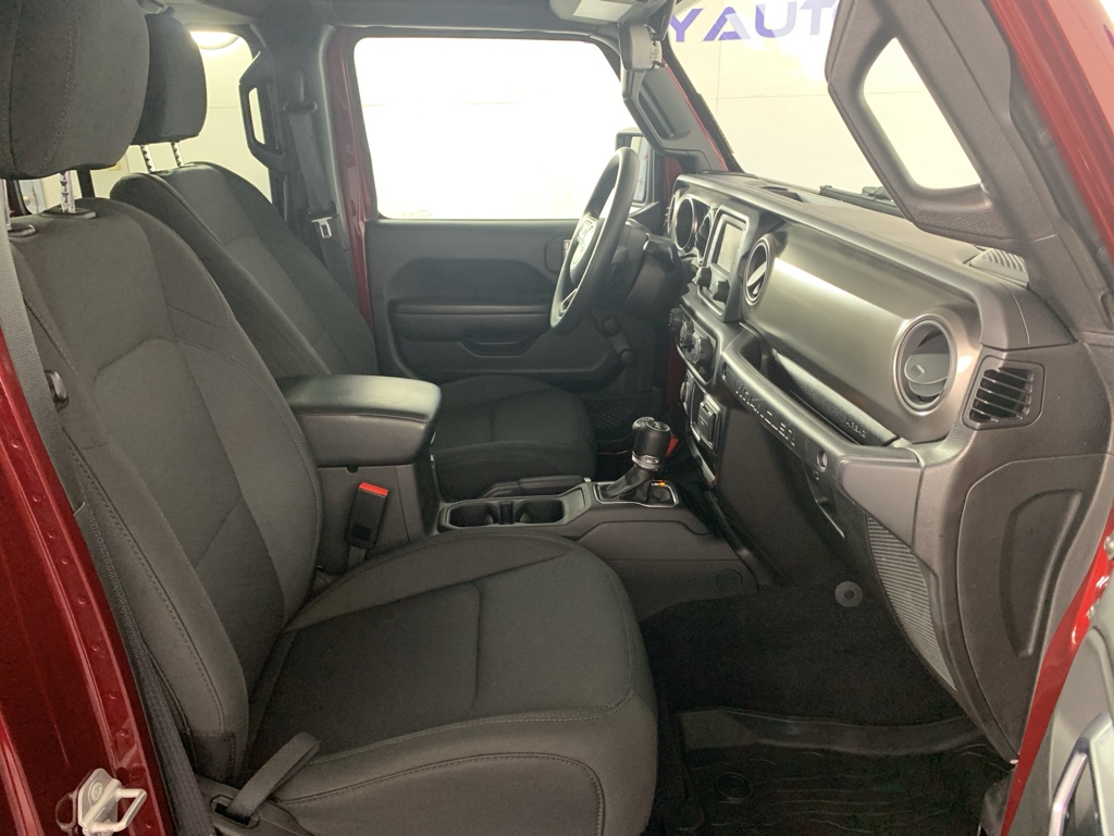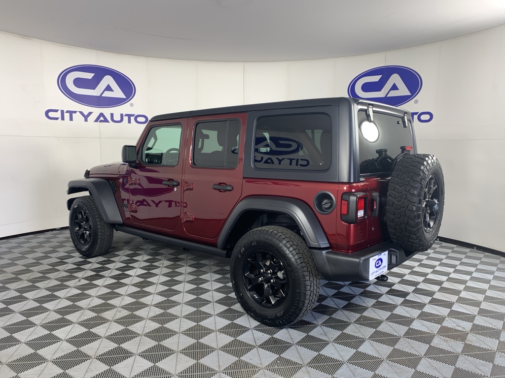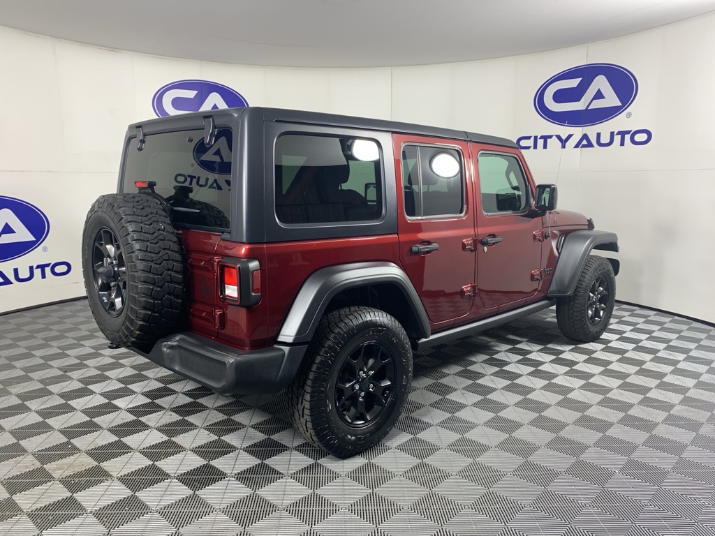 See what's behind you with the back up camera on this mid-size suv. This 2021 Jeep Wrangler has gone through a stringent manufacturer pre-owned certification process, including a meticulous mechanical and reconditioning processes. Take the stress out of car buying with this certified pre-owned. Bluetooth technology is built into it, keeping your hands on the steering wheel and your focus on the road. This model gleams with a flashy red exterior. When you encounter slick or muddy roads, you can engage the four wheel drive on this 2021 Jeep Wrangler and drive with confidence. Set the temperature exactly where you are most comfortable in the Jeep Wrangler. The fan speed and temperature will automatically adjust to maintain your preferred zone climate. This Jeep Wrangler has a 4 Cyl, 2.0L high output engine. The fog lights cut through the weather so you can see what's ahead. The high efficiency automatic transmission shifts smoothly and allows you to relax while driving.