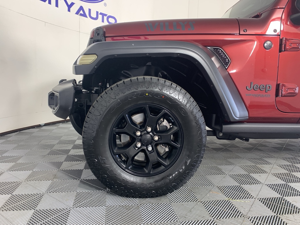 Quick Order Package 22K Willys Sport: Willys; Mold in Color Bumper with Gloss Black; Deep Tint Sunscreen Windows; LT255/75R17C Tires; Black Trail Rated Badge; 4-Wheel Drive Swing Gate Decal; Black Grille; MOPAR All-Weather Floor Mats; Willys Hood Decal; Rock Protection Sill Rails; Anti-Spin Differential Rear Axle; Wrangler Decal; Matte Black Jeep Badge; 17" X 7.5" Moab Black Aluminum Wheels. Quick Order Package 23K Willys Sport: Willys; Mold in Color Bumper with Gloss Black; Deep Tint Sunscreen Windows; LT255/75R17C Tires; Black Trail Rated Badge; 4-Wheel Drive Swing Gate Decal; Black Grille; MOPAR All-Weather Floor Mats; Willys Hood Decal; Rock Protection Sill Rails; Anti-Spin Differential Rear Axle; Wrangler Decal; Matte Black Jeep Badge; 17" X 7.5" Moab Black Aluminum Wheels. Black 3-Piece Hard Top. Snazzberry Pearlcoat. Jeep Trail Rated Kit. MOPAR All-Weather Floor Mats. **Equipment listed is based on original vehicle build and subject to change. Please confirm the accuracy of the included equipment by calling the dealer prior to purchase.**