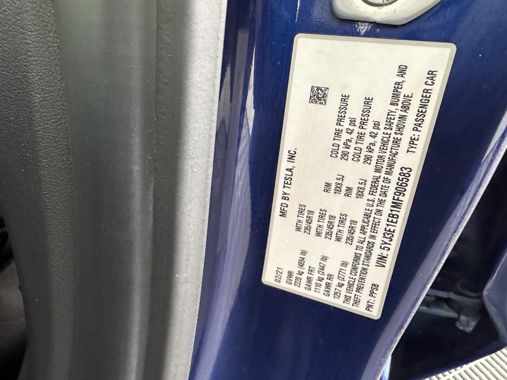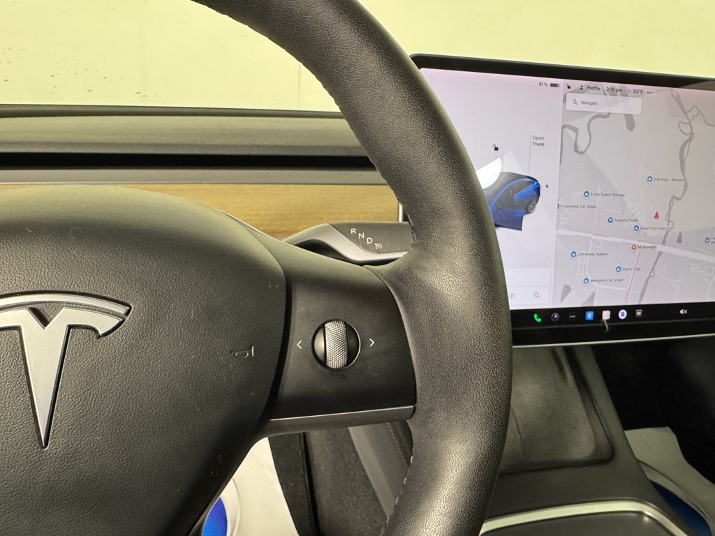 Keep your hands warm all winter with a heated steering wheel in it . The installed navigation system will keep you on the right path. This Tesla Model 3 has gone through a stringent manufacturer pre-owned certification process, including a meticulous mechanical and reconditioning processes. Take the stress out of car buying with this certified pre-owned. The leather seats in this 2021 Tesla Model 3 are a must for buyers looking for comfort, durability, and style. This vehicle is a certified CARFAX 1-owner. Our dealership has already run the CARFAX report and it is clean. A clean CARFAX is a great asset for resale value in the future. Protect this unit from unwanted accidents with a cutting edge backup camera system. This large car has a Electric Motor high output engine. Conquer any rainy, snowy, or icy road conditions this winter with the all wheel drive system on it. The Tesla Model 3 shines with an exquisite blue finish.