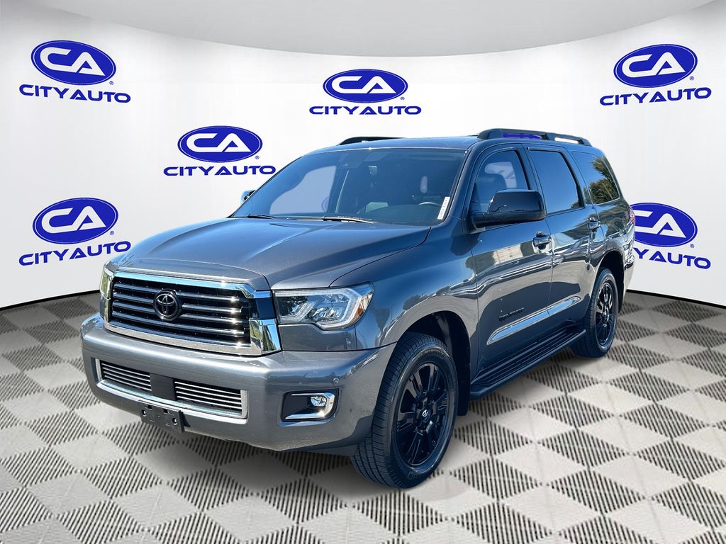 TRD Sport Premium Package- Black Leather-Trimmed Seats. Heated & Power Front Seats. Power Reclining and Fold-Flat 3rd Row Seating. Auto-Dimming Rearview Mirror With Compass And HomeLInk Universal Transceiver. Premium Audio - 7-in Touchscreen. Dynamic Navigation with 3-Year Trial. See Toyota.com/Audio-Multimedia for Details. Connected Services - Safety Connect w/ 1-Year Trial. Service Connect w/ 10-Year Trial. Remote Connect w/ 1-Year Trial. Destination Assist w/ 1-Year Trial. Wi-Fi Connect w/ Up To 2 GB within 3-Month Trial. See Toyota.com/Connected-Services for Details.: 20" X 8" TRD Sport Black Alloy Wheels; TRD Sport Shocks; Premium Audio Radio with Dynamic Navigation; TRD Sport Sway Bars; TRD Sport Grade Package; TRD Sport Floor Mats; TRD Sport Badge; 2nd Row Captains Seats; TRD Shift Knob; P275/55R20 Tires; Leather Seat Trim; TRD Sport Door Sill; Front Heated Bucket Seats; Auto-Dimming Rearview Mirror. Cargo Cover. **Equipment listed is based on original vehicle build and subject to change. Please confirm the accuracy of the included equipment by calling the dealer prior to purchase.**