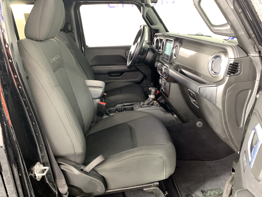 When you encounter slick or muddy roads, you can engage the four wheel drive on the vehicle and drive with confidence. This model offers Android Auto for seamless smartphone integration. It offers Apple CarPlay for seamless connectivity. The vehicle keeps you comfortable with Auto Climate. The high efficiency automatic transmission shifts smoothly and allows you to relax while driving. Protect this vehicle from unwanted accidents with a cutting edge backup camera system. The Jeep Wrangler is painted with a sleek and sophisticated black color. Good News! This certified CARFAX 1-owner vehicle has only had one owner before you. Our dealership has already run the CARFAX report and it is clean. A clean CARFAX is a great asset for resale value in the future. The vehicle is a manufacturer certified pre-owned vehicle. Set the temperature exactly where you are most comfortable in this vehicle. The fan speed and temperature will automatically adjust to maintain your preferred zone climate. Easily set your speed in the vehicle with a state of the art cruise control system. Increase or decrease velocity with the touch of a button. The Electronic Stability Control will keep you on your intended path. This Jeep Wrangler has a 4 Cyl, 2.0L high output engine. The fog lights cut through the weather so you can see what's ahead. Enjoy the tried and true gasoline engine in this vehicle. Bluetooth technology is built into this Jeep Wrangler, keeping your hands on the steering wheel and your focus on the road. This mid-sized SUV is perfect for your next adventure. You'll never again be lost in a crowded city or a country region with the navigation system on this unit. An off-road package is equipped on this vehicle. The rear parking assist technology on the vehicle will put you at ease when reversing. The system alerts you as you get closer to an obstruction. with XM/Sirus Satellite Radio you are no longer restricted by poor quality local radio stations while driving this Jeep Wrangler. Anywhere on the planet, you will have hundreds of digital stations to choose from.