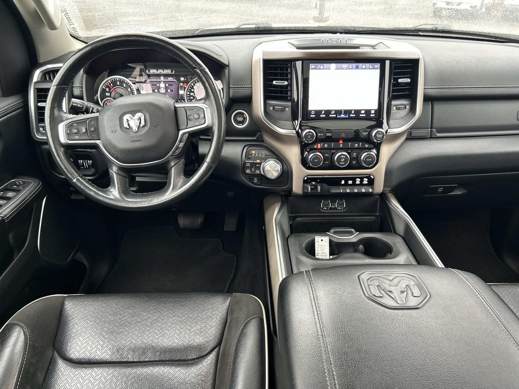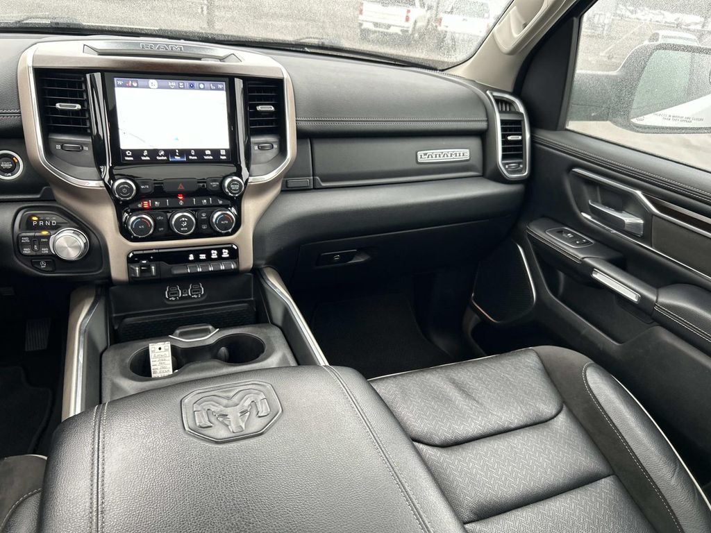 Quick Order Package 27H Laramie. Laramie Level I Equipment Group: Remote Tailgate Release; Auto High Beam Headlamp Control; Blind Spot and Cross Path Detection; Rain Sensitive Windshield Wipers; ParkSense Front/rear Park Assist with Stop; Foam Bottle Insert (door Trim Panel); 2nd Row in Floor Storage Bins. Dual-Pane Panoramic Sunroof. 20" X 9" Premium Paint/polished Wheels. Leather Trimmed Bucket Seats. Uconnect 5 Navigation Radio with 8.4" Display. ParkSense Front/rear Park Assist with Stop. 33 Gallon Fuel Tank. Trailer Brake Control. Rear Wheelhouse Liners. **Equipment listed is based on original vehicle build and subject to change. Please confirm the accuracy of the included equipment by calling the dealer prior to purchase.**