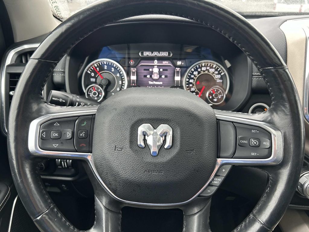 Good News! This certified CARFAX 1-owner vehicle has only had one owner before you. This model comes equipped with Android Auto for seamless smartphone integration on the road. Apple CarPlay: Seamless smartphone integration for it - stay connected and entertained on the go! Keep your hands warm all winter with a heated steering wheel in the Ram 1500 . The state of the art park assist system will guide you easily into any spot. This vehicle has gone through a stringent manufacturer pre-owned certification process, including a meticulous mechanical and reconditioning processes. Take the stress out of car buying with this certified pre-owned. Start this vehicle from inside with remote start. This 1/2 ton pickup offers Automatic Climate Control for personalized comfort. Our dealership has already run the CARFAX report and it is clean. A clean CARFAX is a great asset for resale value in the future. Protect the Ram 1500 from unwanted accidents with a cutting edge backup camera system.