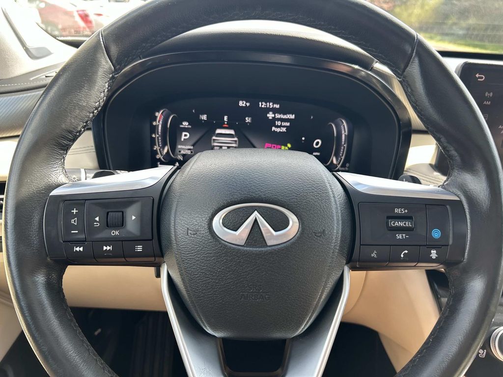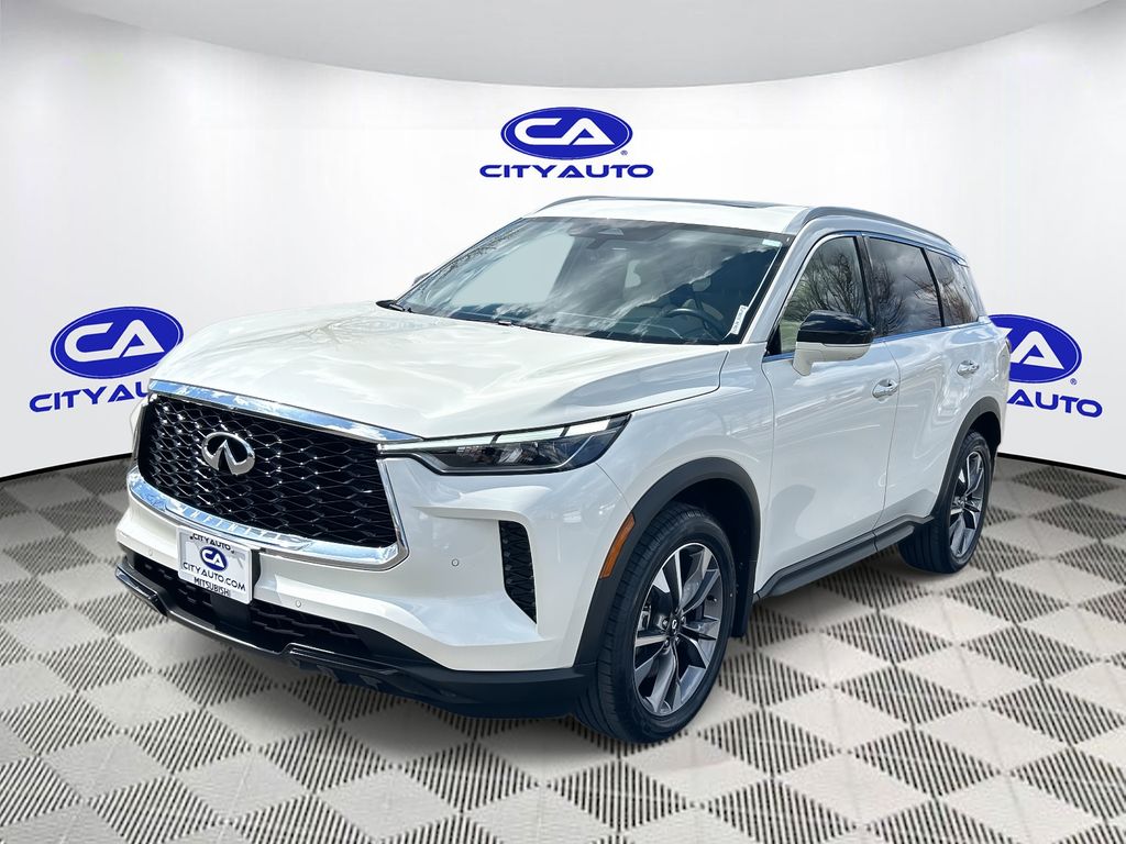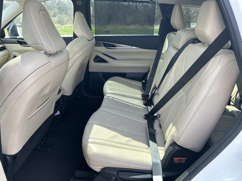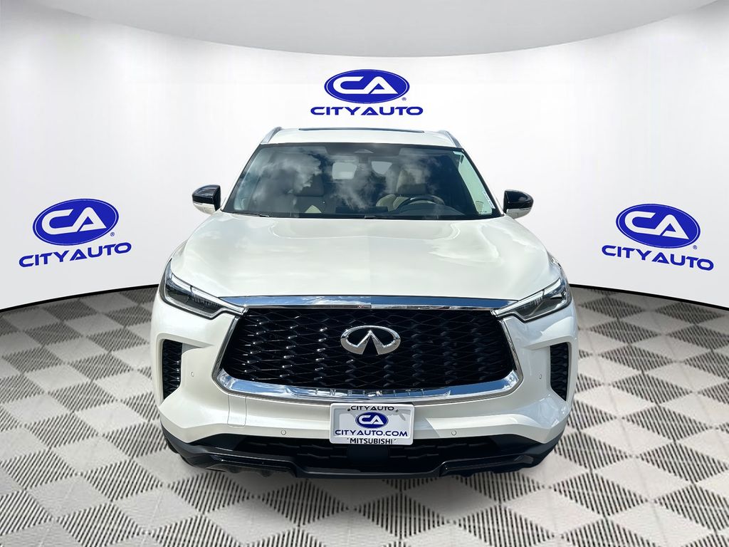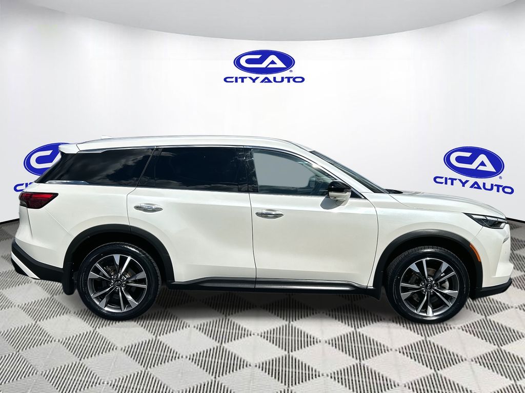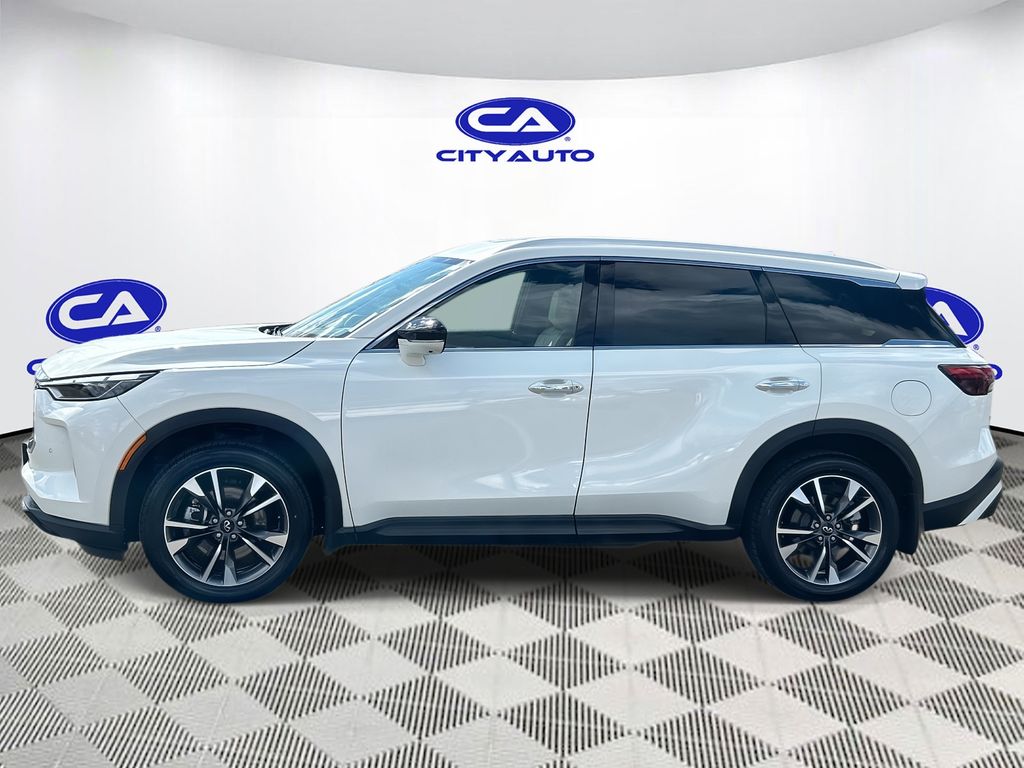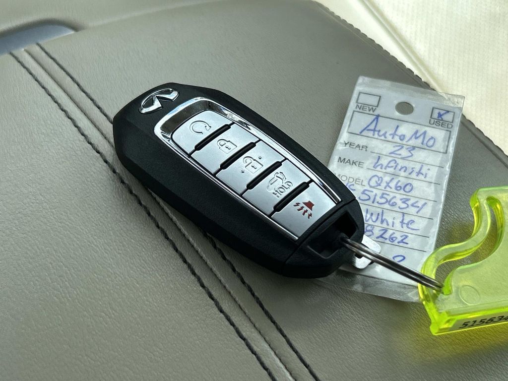 Enough room to carry all your cargo, passengers and equipment on a long road trip. Offering a ride height that is above most other vehicles, it has great visibility on the road. Conquer any rainy, snowy, or icy road conditions this winter with the all wheel drive system on this 2023 INFINITI QX60 . This vehicle offers Android Auto for seamless smartphone integration. Apple CarPlay: Seamless smartphone integration for this vehicle - stay connected and entertained on the go! This vehicle has an automatic transmission. The vehicle features a high end BOSE stereo system. See what's behind you with the back up camera on this vehicle. This vehicle is a certified CARFAX 1-owner. This INFINITI QX60 has a clean CARFAX vehicle history report. This unit has gone through a stringent manufacturer pre-owned certification process, including a meticulous mechanical and reconditioning processes. Take the stress out of car buying with this certified pre-owned. Maintaining a stable interior temperature in this unit is easy with the climate control system. Easily set your speed in this INFINITI QX60 with a state of the art cruise control system. Increase or decrease velocity with the touch of a button. This 1/2 ton suv has a V6, 3.5L high output engine. The vehicle's Forward Collision Warning feature alerts drivers to potential front-end collisions. Enjoy the tried and true gasoline engine in it. This 2023 INFINITI QX60 features a hands-free Bluetooth phone system. Keep your hands warm all winter with a heated steering wheel in this unit . The leather seats in the vehicle are a must for buyers looking for comfort, durability, and style. Help alleviate lower back pain with the driver seat lumbar support in the INFINITI QX60. You'll never again be lost in a crowded city or a country region with the navigation system on it. Enjoy the convenience of the power liftgate on this 1/2 ton suv. Never get into a cold vehicle again with the remote start feature on the vehicle. This model embodies class and sophistication with its refined white exterior. with XM/Sirus Satellite Radio you are no longer restricted by poor quality local radio stations while driving it. Anywhere on the planet, you will have hundreds of digital stations to choose from.