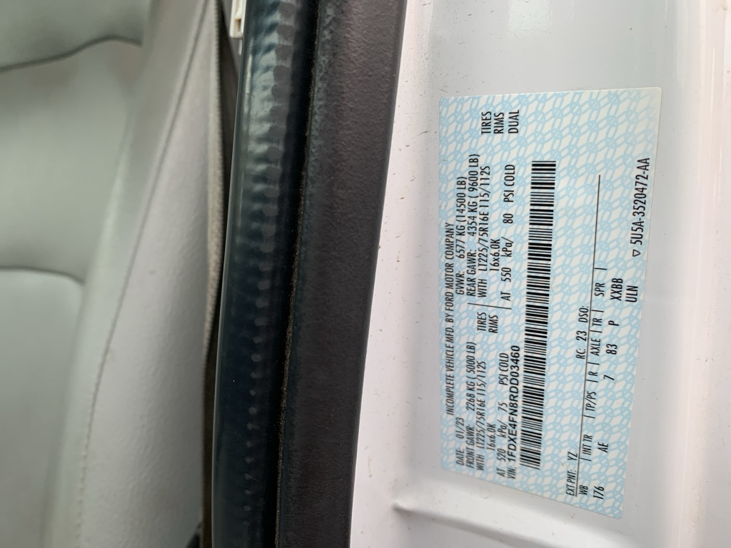 Order Code 782A: 6-Speed O/D with Tow Haul Transmission; Vinyl Bucket Seats; 4.56 Axle Ratio; Dual High Back Buckets; AM/FM Stereo with Clock Display and 2 Speakers; LT225/75R16E BSW A/S Tires; 14 500 Lb Payload Package GVWR; 16" X 6" White Painted Steel Wheels; Auxiliary Fuel Port; 7.3L V8 Premium-Rated Engine Power Windows and Locks Group Tire Pressure Monitoring System (TPMS) Upfitter Interface Module (UIM) Cruise Control Manual Telescoping Trailer Tow Mirrors 4 Lateral/2 Long Standard Pattern Frame Spacers B-Pillar Trim Kit Frame Pucks (isolators) 5000 lbs. Maximum Front GAWR **Equipment listed is based on original vehicle build and subject to change. Please confirm the accuracy of the included equipment by calling the dealer prior to purchase.**
